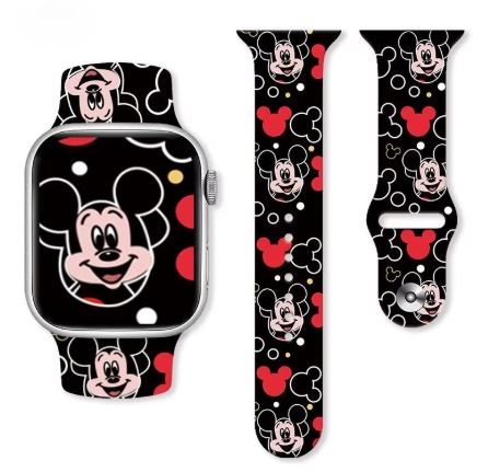 Upgrade your Apple Watch with our Black and Red Mickey Mouse Strap. Made of high-quality materials, it is designed to perfectly fit your wrist and provide ultimate comfort. Add a touch of fun and style to your daily look with this unique and durable watch strap.